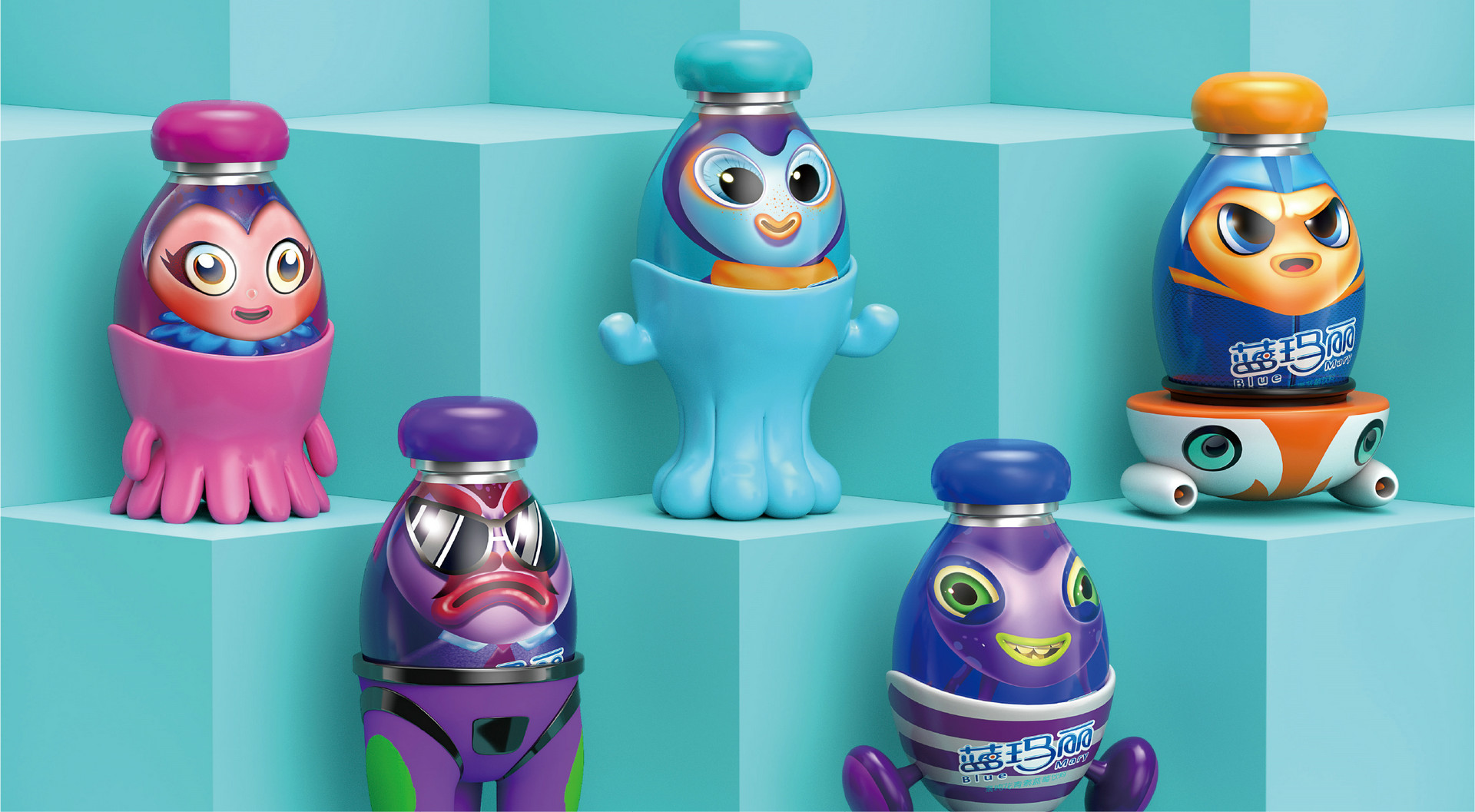 Blue Marry is a "high-purity anthocyanin blueberry drink" launched by Wortact Agriculture to protect children's eyesight. KHT created the virtual spokesperson Blue Marry to highlight functionality and fun, and extended it into different series of designs.