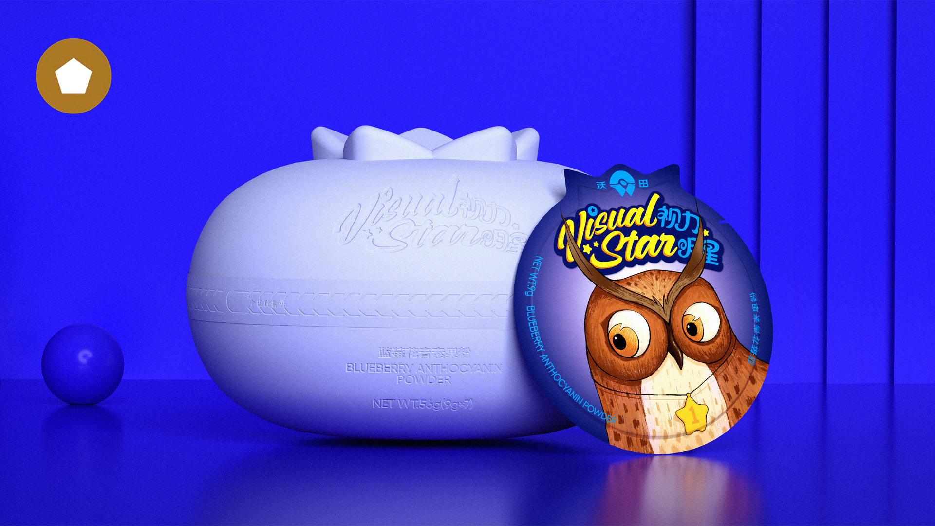 Visual Star - Blueberry Anthocyanin Powder, a product designed to protect children's eyesight, adopts the creative concept of "Visual Star" for its packaging and selects the seven animals with the best eyesight in nature as its visual imagery. This work has won the Pentawards Award.