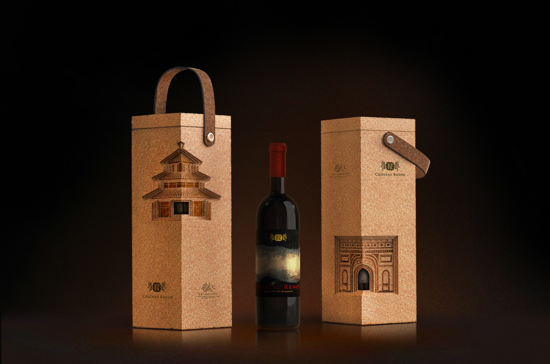 To celebrate the 60th anniversary of the establishment of diplomatic relations between China and France, this packaging design adopts the creative concept of cultural exchange and communication between the East and the West, taking China's "Temple of Heaven" and France's "Arc de Triomphe" as the core elements. The outer box is made of cork in line with the environmental protection concept. The architectural outline is created through die-cutting technology, and the thickness is stacked layer by layer inward, which also plays a role in shock absorption and protection. The innermost layer is printed with architectural patterns, which are artistically summarized. Two hollowed-out gate parts respectively reveal the red wine products. The entire packaging is like an embedded sculpture, endowing the product with multi-dimensional visual effects and artistic taste.